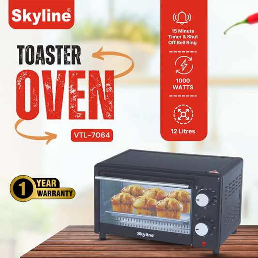 Skyline 12L Toaster Oven | 1000W Compact Baking & Grilling Solution