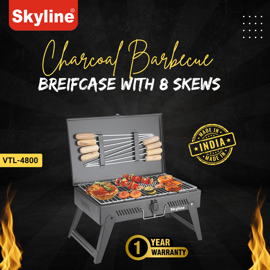Skyline Charcoal Barbeque Briefcase with 8 Skews - Portable Grilling Solution for Outdoor Cooking