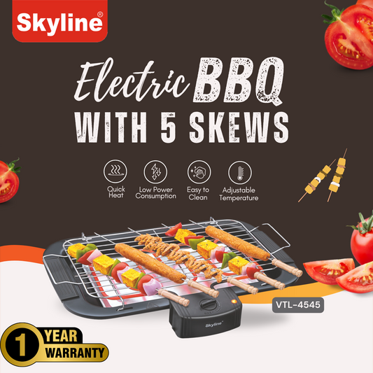 Skyline 2000W Electric Barbecue Grill with 5 Skewers | Portable & Energy-Efficient Grilling