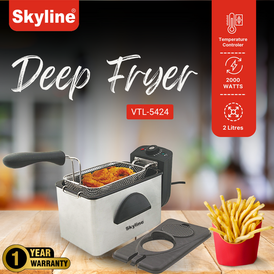 Skyline 2000W Deep Fryer | 2L Capacity with Adjustable Thermostat & Stainless Steel Design