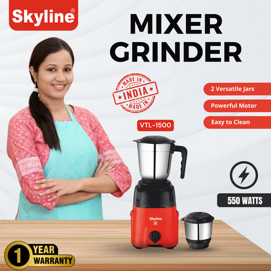 Skyline 550W Mixer Grinder with 2 Stainless Steel Jars | Power-Packed Kitchen Essential