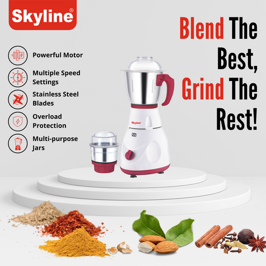 Skyline 550W Mixer Grinder with 3 Jars | Powerful & Versatile Kitchen Companion
