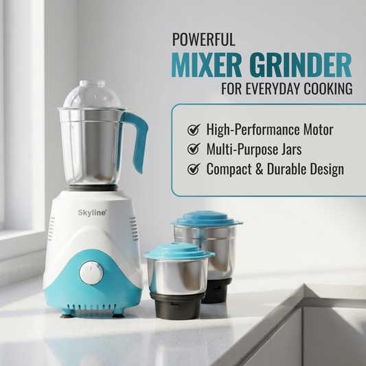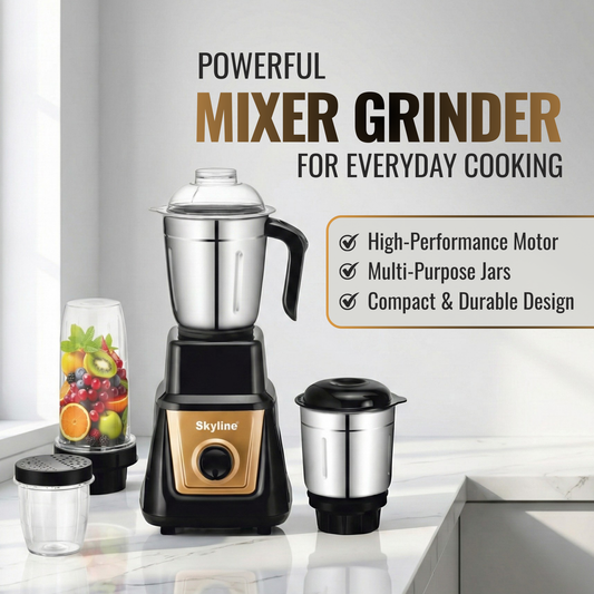 Skyline 750-Watt Mixer Grinder with 3 Jars – Power-Packed Performance for Every Kitchen