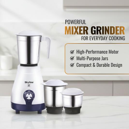 Skyline 600W Mixer Grinder with 3 Jars | Heavy-Duty Kitchen Performer
