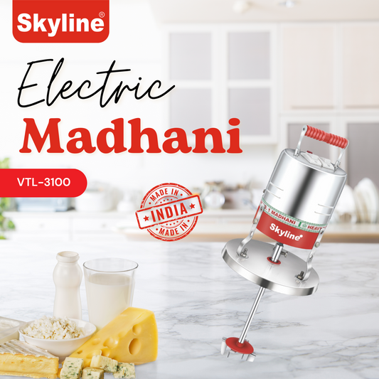 Skyline 100W Heavy Duty Stainless Steel Madhani Machine | Multi-Purpose Butter, Buttermilk, Lassi, and Curd Maker