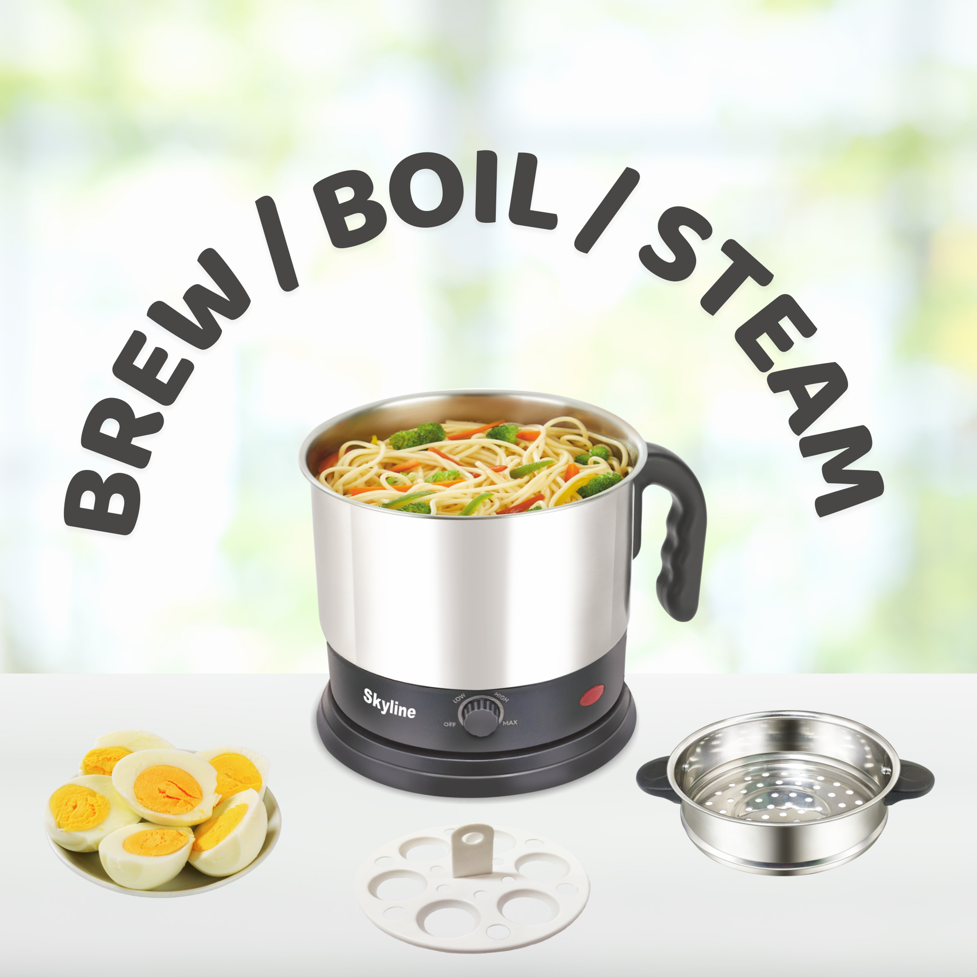 Skyline 600W Multi Kettle with Steamer & Egg Attachment, 1.5L - Compact All-in-One Cooker for Healthy Meals