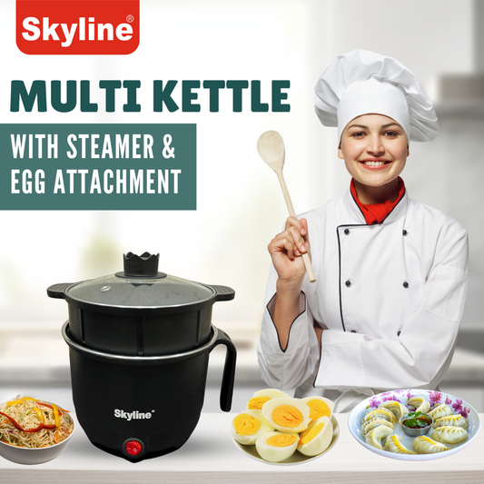Skyline 600W Multi Kettle with Steamer & Egg Attachment, 1.5L - Compact All-in-One Cooker for Healthy Meals